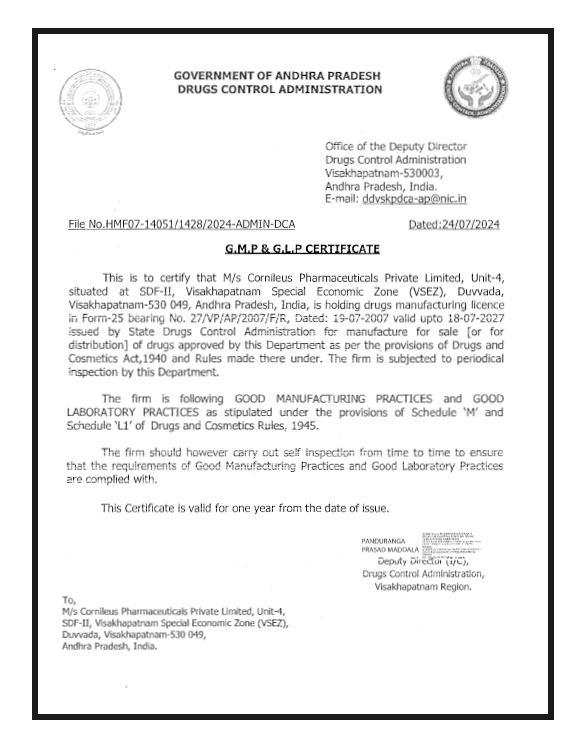 GMP & GLP Certificate
